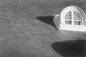 ![]() 屋根のクローズアップ、1枚のスレート板のサイズは約30×20p |