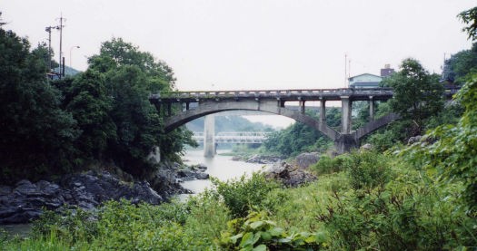 ■発掘者コメント 高蔵寺ニュータウンの近くにある鹿乗(かのり)橋は、明治初期にかけられた鉄のアーチ橋で、現在の橋は、それを骨細みにして、コンクリートを巻いたものである要するに、鉄骨鉄筋コンクリートの橋ということになる。そのとき、斜材(ラチス)を撤去しており、現在は垂直材のみとなっている。鹿乗橋は明治初期に架設された13橋の、鋼アーチ橋の一つであるが、現存する橋がほとんどないため貴重な橋と言える。 また、銘板にコンクリートを巻いたときの様子が記されている。「架設後40年以上になり、鉄骨が腐食し、強度が半分の55%までに低下した。そのため、鉄筋コンクリートにて被覆し補強した」と。工事は愛知県直営で行なわれた由。 橋の近くには、かつては小粋なたたずまいの別荘かと思われる家が目につくが、今は住む人がおらず、荒れている。昔は渓谷美にあふれた景勝地として、人々の注目を集めていたに違いない。それゆえ、橋面上に構造部材が突出していない、上路式のアーチタイプにしたこともうなずける、この上路式は風光明媚な景勝地に取り人れられる橋のタイプである」 瀬戸市よりの橋の際に「白鹿館」という、茅葺きの、しょう酒な料亭があって、その欄干越しに眺める風景はまた格別なものがあったが、今はホテルに変わってしまって、風景を眺めることができない残念である。 |