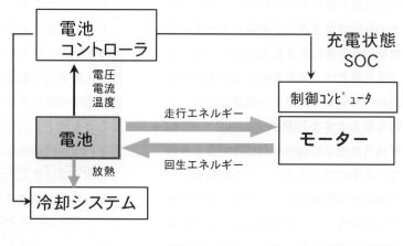![]() 図3ハイブリッド自動車の電池の使い方 |