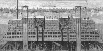 ![]() 図4 ブルックリン吊橋の基礎と潜函の状況 |