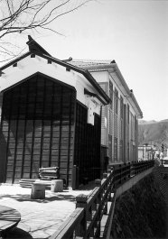 登録有形文化財 ■紹介者コメント 郡上郡八幡町市街地のほぼ中央に位置するこの建物は、1936年(昭和11)に旧八幡町の役場庁舎として建設された。木造2階建ての洋風建築で、1階は町役場、2階は町議会の議場として使用され、1954年(昭和29)の町村合併により、行政の中枢機能が入り1994年(平成6)に新庁舎が完成するまで60年にわたり利用されてきた。外観は、外装を板張りとし正面と南側には石造りの玄関ポーチを配し端正な感じの縦長な窓がバランスよく配置されている。小屋組は、当時としては最新の技術であったトラス工法が用いられたようである。 緑の山々に囲まれ、左手には豊かな水量をもつ清流吉田川が流れる美しい自然環境が、建物の外観をよりいっそう引き立たせ、改めて環境の大切さを認識させられる。このあたりの土地の地価は思いのほか高く、しかしそれが幸いしてこれまで開発されず、町全体を保存計画しながら現在の町並みを作り上げているとお聞きした。 現在は、郡上八幡旧庁舎記念館として保存改修され観光と情報発信の駅としてまた町民の憩いの場として活用されている。保存改修は、建物が今後も使用に耐え得るかを調査した後、順次増築された部分を撤去しつつも基本構造と外観をそのまま活かし、建築された当初の形に復元した。内部は地場産業である木をテーマとした木の館として再生している。格天井や窓は従来の仕様を修復保存し当時の風情を残している。 毎年夏には、約400年の歴史がある郡上おどりが行われる。その折にでも立ち寄られたらいかがでしょう。昼間とは違った風情を味わえるかもしれません。 |
