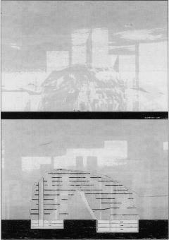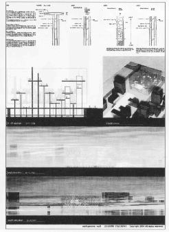 | 設計手段として、違った分野の尺度を使用して数値化するといった手法には人間の知的好奇心をそそるものがあるらしい。そこにはまったく根拠の無い数遊びであるといった批判を背に受けながら、過去の経験値によって決定される退屈な人間の思考の限界を超えられる計算尺になるのではといった期待感がある。音楽の旋律が紙面に踊るさわやかな表現で多くの審査員の心をつかんだものの、夢から覚めるのも早かった。音楽と建築の類似性から引き出される設計手法の説明だけではなく、その上に、ある音楽家の活動を記念してどこに誘致するのかといった場所の選定の話とか、その場所ではどんなミュージアムが必要かといった具体的な話が加わって建物の背景が浮かび上がれば、上位入賞ができた作品である。(廣瀬高保) | |
