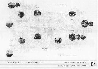 | 旧東海道・有松宿の歴史的景観の街並みの背後に立地する小学校を中心にした、学習・コミュニティー空間の再構成の提案である。歴史的な街並みという文脈の中に、背後から学習や交流の空間を絡めることにより、何が生まれるか。歴史的街並みという空間システムに他のネットワーク系を持ち込むことは、かなり具体的なデザイン作業の集積を求められ、本当にリアリティーのある作品にするのはなかなかむつかしいと思う。街並みの修景保存とその内部で営まれる生活は、常に表層では推し量れないストレスと選択を、住民一人ひとりに強いている。そこに住む子どもたちにも、また、歴史的な遺産を誇りにしてもらいたいと思うと同時に、それに押しつぶされない強い創造カを養ってもらいたいと思う。この作品はそんな想いを込めたであろう習作であるが、これから社会に出てもそのような場面は日常的であり、既存のシステムに豊かな何かを付け加えていってほしいものである。(前田佐智男) | |