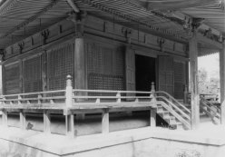 | 妙源寺柳堂 外観 | 正面の中央柱間には双折桟唐戸をつる | 宮殿に聖徳太子像を祀っている |