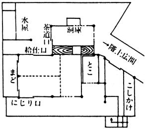 ■発掘者コメント この建物は昭和美術館の中にあります。江戸時代末期、尾張藩家老渡辺規綱によって名古屋市の尾頭の堀川端に建てられた別邸の一部を、1935年(昭和10)後藤幸三により、後藤家の別邸としてここに移築されたものです。茶室と書院からなっており、茶室は捻駕籠の席と呼ばれ、建物の平面に対し少し角度を振って配置され、三方に縁が回り、ちょうど駕籠を少し捻った格好で、それが席名の由来となっています。 渡辺規綱(1792〜1871)は風雅を好み、茶や陶芸に親しんだ人で、夕日庵(ゆうじつあん)と号し、裏千家十一世玄玄斎の実兄です。 捻駕籠の席内部は、四畳中板入り出炉の席で、三畳の客座と中板を入れた点前座を遣り違いにし、床前の貴人座に重心を置く間取りとなっています。中板が席中にゆとりをもたせると同時に、貴人座への結界ともなっています。また正客から亭主を真正面に向かい合うように配置され、床は点前座の方へ寄せられ、床脇が開放されている(上部だけ柱を見せた筆柱となっている)ので、客座からも点前座からも床がよく見えるようになっています。風雅を楽しむように別邸に造られ、地形に応じた寛ぎのある構えを見せており、捻駕籠の席というその名からも詩的な叙情の漂う茶席であり、いわゆる求道のための厳しい修行の席とは異なった、寛ぎと遊びを与える雰囲気をもった玄玄斎好みの確実な遺構として重要です。 |