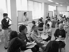 講習会のようすNPO法人 夢未来くんま 心豊かで安心して支え合う地域づくりを 村おこしの経緯 1986年、熊地区全戸加入の村おこしが始まった。みなし法人という組織で営業をすることに限界を感じ、社会性と継続性のある組織にと1993年頃から法人格取得のための研修が始まった。