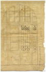 4 44硝子詳細図」。「明治42年11月」と木内真太郎のサインが墨で書かれ、朱の判子がある。和紙の変色具合,墨のタッチなどが同じであり、「図1」が描かれたのはこれらと同時期だと分かる。 京都大学図書館に、重要文化財となった「ジョサイア・コンドル博士建築図面」の原本468点が保管されている。「図1」ほか3点のデザイン原画と照合のため昨年7月、私をいつもフォローしてくれる、若く頼もしい共同研究者の清水隆宏さん(岐阜工業高等専門学校准教授)と京大図書館へ出かけた。事前に「貴重書閲覧許可願」に目的と希望資料名を詳細に書かねばならない。枚数が多いのは困るということで11枚を厳選してお願いする。京大キャンパスの緑多い通路奥、古めかしい図書館、その手前にある学舎壁際に車を止める。図書館員Sさんは義務的でなく親切だ。彼女は厳かに閲覧室にある大ぶりのテーブル上に、依頼しておいた図面を1枚ずつ丁寧に置く。古河邸、成瀬邸、三井倶楽部、教会(E)、成瀬邸など。Sさんから「息を吹きかけないでください」「手を触れないように」と注意を受ける。はやる気持ちを抑えながら、すばやくハンカチを取り出し口に覆いをする。体がテーブル上の図面に触れぬよう、首だけそれらに近づける。そうです。あのTV番組「なんでも鑑定団」鑑定士の仕草を思い出す。清水さんは少し控えてじっと目を凝らしている。どちらともなく小さな声ですごいね!とお互いうなずいている。 河東義之著、大判で真紅の背表紙『ジョサイア・コンドル建築図面集Ⅲ』教会(E)図。何度も何度も該当ページを確認していった。実際のコンドル直筆図面を目の前に身震いをしてしまう。彩色もプロポーションもやっぱり持参の絵と一緒。「図1」木内のデザイン画と京大資料No.458「教会(E)設計図」は同じだ! |
