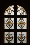 | 東京都北区飛鳥山近くの旧古河庭園に、大谷美術館「古河虎之助邸」がある。同邸の京大資料、コンドル図面は58枚。その中からステンドグラスがより多く描かれているNo.350(本館断面図)を選び閲覧する。実際の同邸ステンドグラスは色彩のない静かなデザインである。しかし原図には華やかな紋様の窓、扉が描かれている。このNo.350図は本当に美しく、しばし幸福感に包まれる。 木内家資料「図2」は京大資料と結びつかない。実物(写真1)と「図2」を重ね合わせてみる。 2009年9月初旬、「図2」の写しを持ち大谷美術館「古河虎之助邸」を訪れた。学芸員Uさんは持参の写しを見るなり、すぐさま本物デザインと認識。邸内および屋根裏部屋隅々まで私を案内し、丁寧に説明する。一階食堂(喫茶室)で紅茶をいれながら、この館に仏間付き和室を設計したコンドルの魅力を学者の目で伝えてくれる。研究者同士意気投合し、その後、岩崎彌之助高輪邸「三菱開東閣」、明治村博物館、三菱一号館などあちこち2人で回る。彼女は会うたびに言う。「どうして古川だけシンプルなステンドグラス? 三井も三菱も華麗なのに!」 確かにそう思う。私への宿題だ。多くの知識を仲間に伝えた彼女は悲しいことに2年前の夏、研究途中で逝去。 |