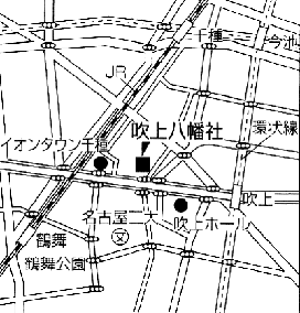 | ■発掘者のコメント 吹上八幡社は地元では八幡さんと呼ばれ、激しく車の行き交う若宮大通りの北に粛として佇んでいる。戦前は氏子により祭りの際に舞台を設え、芝居が上演されていた。戦後には白い幕を張って映画が上映され、風になびく映像に住民たちは目を凝らしていた。相撲、三角ベース、木登りなど子どものかっこうの遊び場でもあった。 現在は氏子の数は半減し、訪れる人も少なくなったが、鎮守の森の趣きを今も残す境内で、祭りの日には総代さんによる夜店が立ち、子どもたちの歓声が聞こえる。大晦日の夜、年の明けるのを待ち参拝の後、ドンド焼きの火で暖をとる多くの崇敬者の姿が見られる。 「吹上」の地名の由来は、社伝によれば、往古は入り海の末端の高台にして、清泉湧き出で此の地を古井と称した、とのこと。「弘治年間(1555 ~ 1558 年)、応神天皇の神霊、小船に御して、此処の波打ち際に漂着し給う。“神、吹き上げ給う里”として以後、“吹上の里”といい、天皇との関わりふかきを奉謝し産土神として祭る。明治五年十月、村社に列す」とある。 昨年、名古屋工業大学建築・デザイン工学科保存システム学のフィールドワークにより調査が行われ、改築の痕や修復箇所が見られた。本殿は一間社流造銅版葺き、幣殿と本殿は庇を接し、渡りから二間間口・二間半奥行の拝殿へと繋がる。本殿・幣殿・拝殿と連なる社殿は築130 年となり、特に拝殿の老朽化が著しい。社叢も含め、境内全体の保存、拝殿の耐震化をいかに施すか考慮すべき時期に至っている。 八幡さんの東には郡道が南北に通り、懐かしさを覚える長屋が軒を連ねている。 |