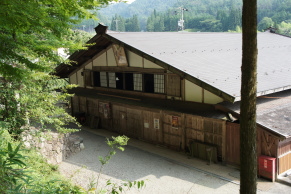 | ■発掘者コメント 白雲座は下呂から20分ほど中津川方面へ戻った門和佐部落の白山神社境内に、山深い景色を見下ろすように建っています。名前は白山神社に由来しているようです。 建物は「門和佐の舞台」として国重要有形民俗文化財に指定されており、切妻屋根、妻入りの貴重な劇場型舞台空間です。江戸時代末期に拝殿型の舞台部分がつくられ、その後客席部小屋を増築して明治23(1890)年3月27日舞台開き。その記録を、舞台内部の柱や壁に書かれた落書きの中に見つけることができます。建物は間口約16.4m、奥行き約20m。舞台は間口10.9m、奥行き9.1m、回り舞台の直径5.4m。450人を収容する2階桟敷を持つ芝居小屋です。 舞台下に下りると、コマを人力で回す押し棒やすっぽんがあり、楽屋や裏方のスペースは傾斜地を利用した明るい空間になっています。 江戸時代以来、農民の大きな楽しみは祭礼の奉納行事として自ら演ずる地芝居・農村歌舞伎で、江戸から役者を呼び本格的に競演するほど力の入ったところもありました。昭和に入り戦争と新しい娯楽のために衰退しましたが、近年になって地域伝統文化復興の機運が高まり、文化遺産を生かした地域の活性化にと復活。現在全国で182の保存会があり、うち56会が東海地方で、特に東濃地方は熱心に保存されています。 白雲座も昭和40年代には幼稚園や寒天倉庫に使用された後、取り壊し売却の話が出ましたが、昭和53(1978)年国の文化財指定を機に、地元の方々の熱意と努力によって「白雲座歌舞伎保存会」が結成され、毎年11月の白山神社の祭礼に合わせて「白雲座地芝居公演」が行われるまでに復活し、町内外の人々の楽しみとなるとともに次代へと受け継がれています。 入場料は取らずに神社寄進の形でいただくお金と公演冊子の広告料など300万円で興行費用を賄っているようで、場内に張られた寄進札が村芝居の雰囲気を盛り上げています。 |