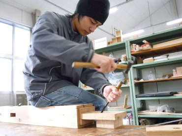 | 作品ギャラリーの制作風景(漆喰塗り) | 長ホゾ込栓の加工(腰掛待合の制作) | 大工棟梁 中村武司氏による説明(腰掛待合の制作) | |